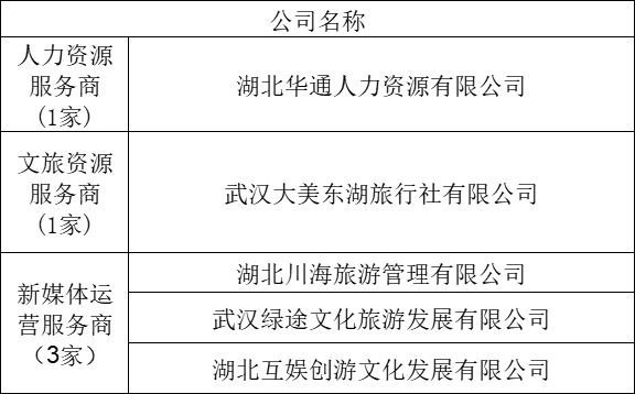 湖北數字文旅集團有限公司2025年合作服務商入庫招募于2025年5月30日在官網發(fā)布招募公告。經招募人確認,現進行合作服務商入庫公示。