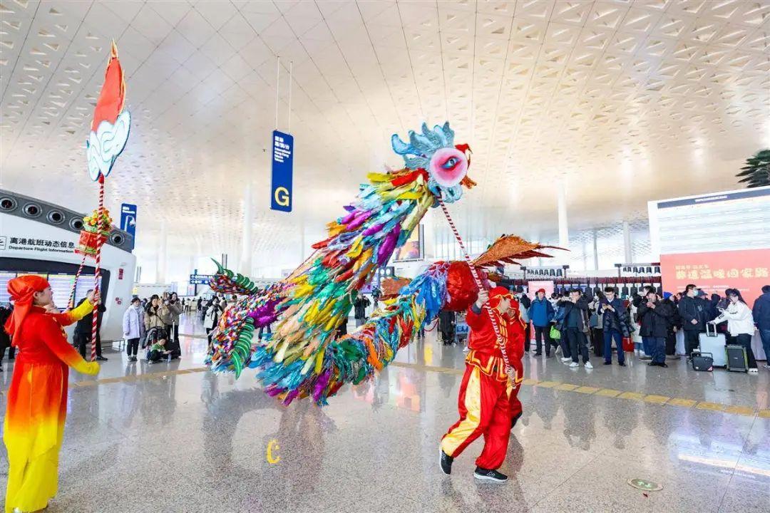 湖北省文旅游廳舉辦“迎龍年過大節(jié)非遺溫暖回家路”活動。1月26日,“迎龍年過大節(jié)非遺溫暖回家路”首場主題活動在武漢天河機(jī)場舉辦,潛江草把龍、舞獅、鄖陽鳳凰燈舞等非遺節(jié)目在航站樓出發(fā)大廳精彩上演,湖北非遺傳承手藝人做糖畫、剪窗花、送福袋、寫春聯(lián),讓旅客在旅途中感受濃濃的節(jié)日氛圍。該活動于1月26日—2月1日每日10:00-15:00在天河機(jī)場T3航站樓出發(fā)(到達(dá))大廳舉辦,活動由湖北省文化和旅游廳主辦,湖北省群眾藝術(shù)館(湖北省非物質(zhì)文化遺產(chǎn)保護(hù)中心)承辦。